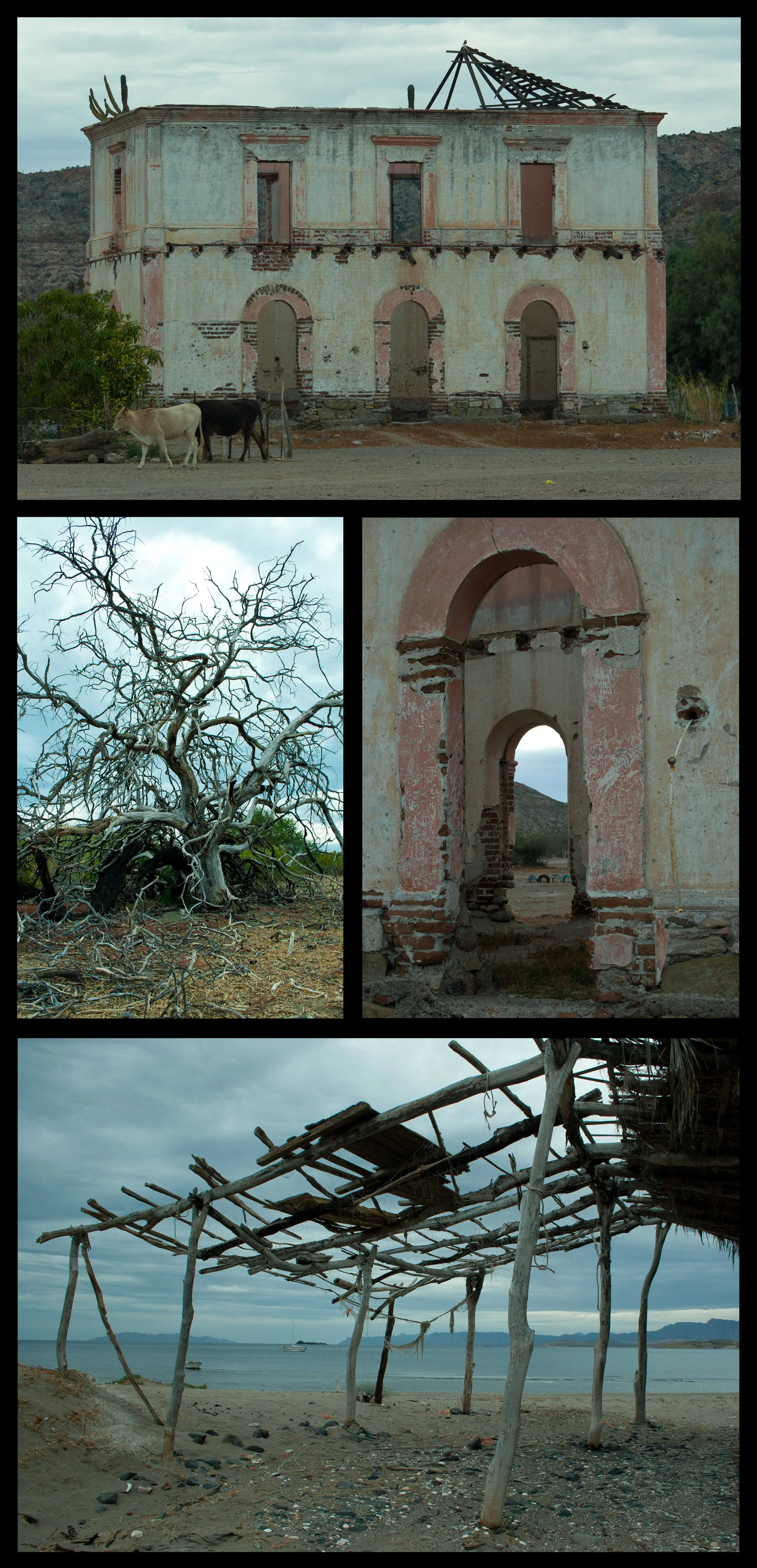 Once we arrived in Timbabiche, we had fresh tuna for lunch and then headed ashore to look for Casa Grande (large house). This is a house that was built in the 1920’s when a local boatless fisherman harvested a pearl reported to be at least five carats. The proceeds were enough to build this large house and buy a fleet of fishing boats. The fisherman has since died and the house has been abandoned and only the exterior walls remain. The town is now a small ranching village with free range cattle walking down the roads and the beaches and a few families living there. That night, for the first time since leaving San Diego, it rained. It was very light rain and only lasted for a few minutes, but it rained. We are actually starting to miss the rain a little.