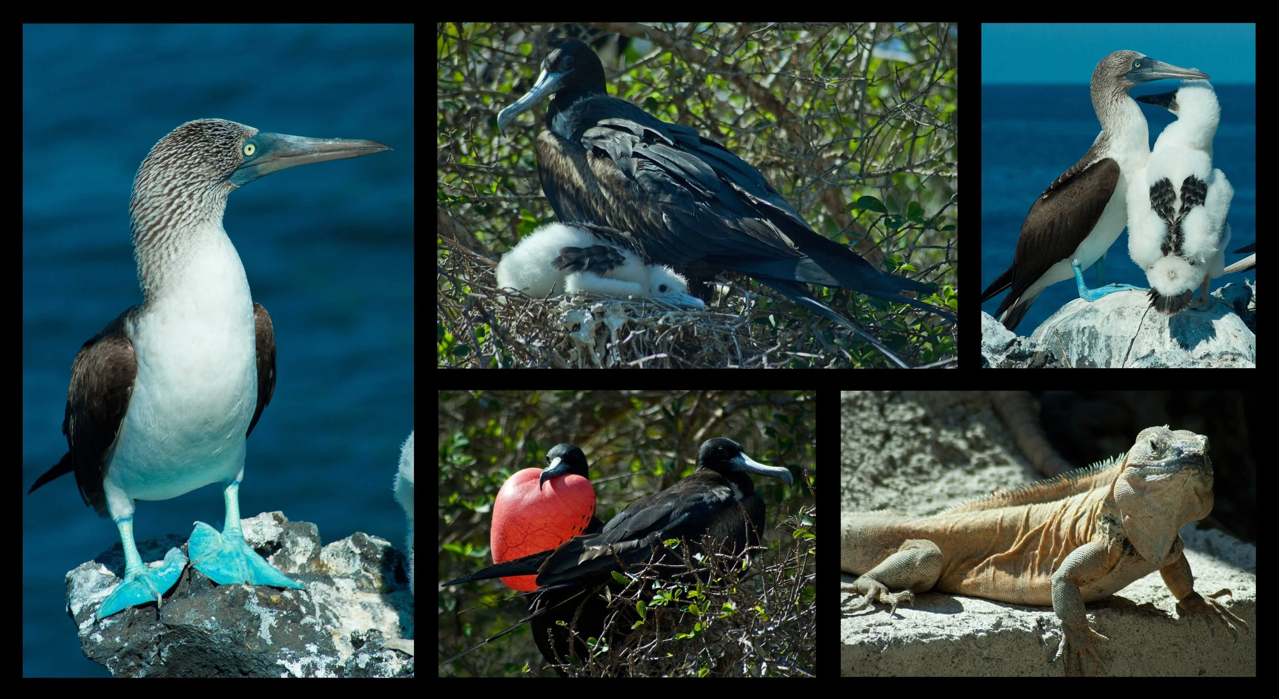Anxious to explore, we hoisted the dinghy off Saviah, and headed for shore. We walked along the beach, which was lined with blue-footed boobie nests and made our way to the hiking trails that wind around and across the island. The first part of the trail was a crowded nesting area for the boobies. Some of the nests were actually right in the middle of the trail. The baby boobies were fuzzy all over, and you could see that their wings were still developing. The mothers were very protective and would hiss at us when we got too close. We ended up having to scramble around quite a bit to avoid the aggressive mothers and make our way inland. Escaping unscathed, we hiked along, watching the frigates overhead. The frigates made their nests in the trees, so they were not as concerned with us passing by their nests. Many of the frigates were mating, and the colors of the birds were amazing.