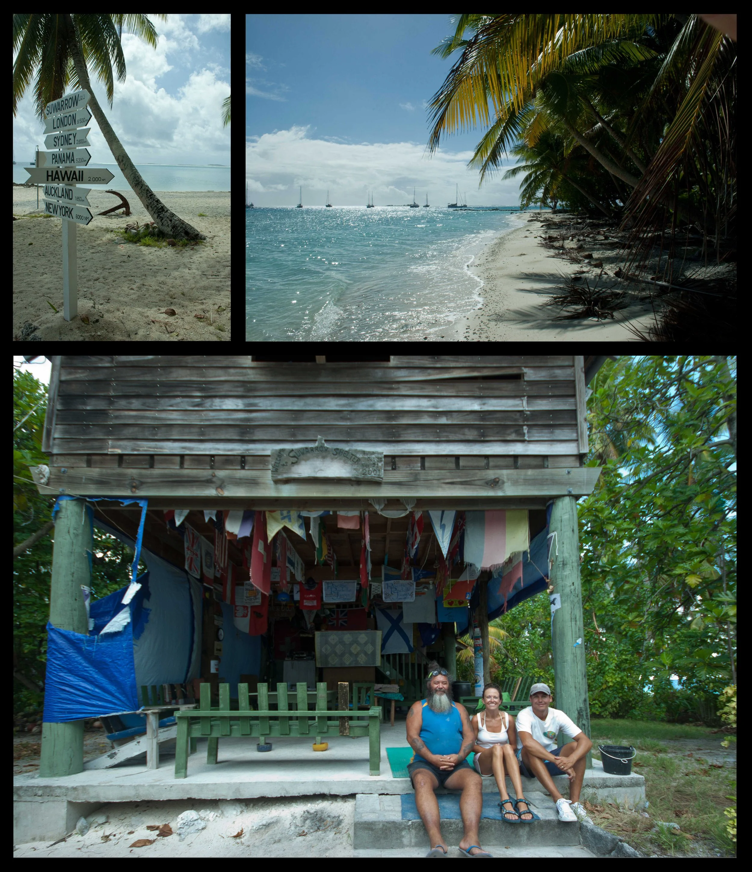 On Thursday, our fourth day, we finally felt comfortable spending some time on shore. We spent most of that afternoon hanging out with James and John. They have very modest living quarters and a small budget for food and other supplies to bring to the island. But, what they do have, they are extremely generous with, and they go out of their way to make you feel at home. When battery power allows, they let cruisers use their showers and after a particularly rainy spell, will let cruisers take on some fresh water for their tanks. They gave us a tour of the facilities, including the fish cleaning station, composting area, their vegetable garden and the book exchange. It was entertaining to hear them tell stories about their time spent on the island.