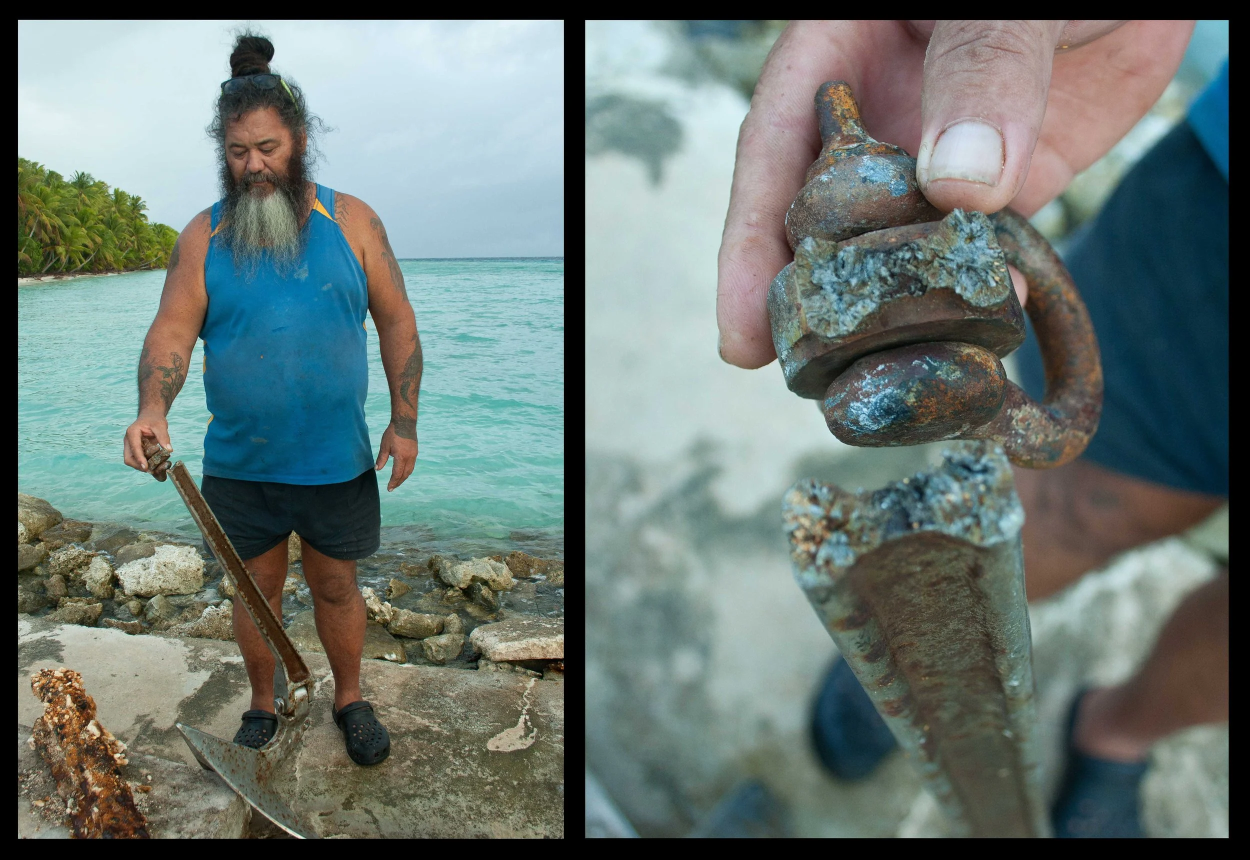 Thursday we finally saw a bit of relief as the winds shifted to the east, and the gusts weren’t as strong. Dan on s/v Loose Pointer dove down and retrieved our anchor and returned it to us. We decided to donate it to Suwarrow as a conversation piece and left it on shore with James – we didn’t want to lug around 45 extra pounds that we don’t need. Everyone stopped by to take a look at the broken anchor, and of course, conversations turned to ground tackle and what kind is the best. Our broken 45 lb CQR was the anchor that came with the boat and was made of stainless steel, which is brittle and more prone to break. Most cruisers carry galvanized anchors rather than stainless steel, as they are made from mild steel that will bend rather than break. This was the only part of our ground tackle system we had not yet replaced, and we feel fortunate that our close call ended so well. Now we’ll do some research to decide which type of anchor to buy as a replacement, and it will definitely not be stainless.