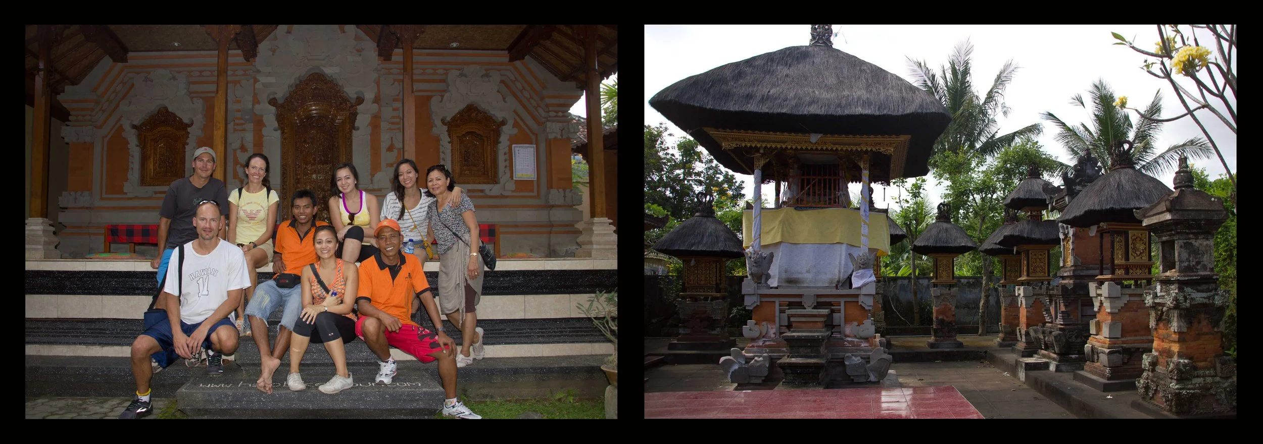 The last stop was at the home of our tour guide. He and his family live in a traditional Balinese house in Ubud. This is actually a walled housing compound with about 10 small buildings, that all serve a certain purpose are arranged in a special way throughout courtyard. There was amazing detail in the stone work on the buildings, and the windows and doors were beautifully carved wood. He introduced us to his family, who had prepared a traditional Balinese feast for us. It was the best meal we had on Bali, and after lunch, they let us look around their family temple. The tour turned out to be a really nice way to see the island, and afterword they gave us a ride back to the hotel in Nusa Dua.