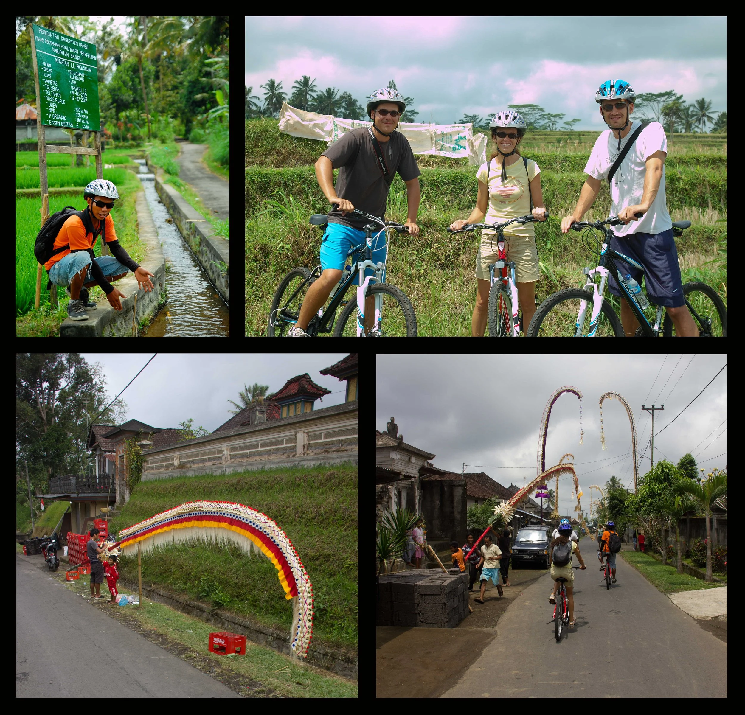 When breakfast was over, we piled back in the van and drove to an area where the bikes were waiting for us. The bike tour consisted of a mainly downhill ride on less traveled roads around the countryside and through some villages. We wound our way through rice paddies, by temples and cemeteries. We had a really good guide who would stop periodically to point out certain things and give us information about the island and the Balinese culture.