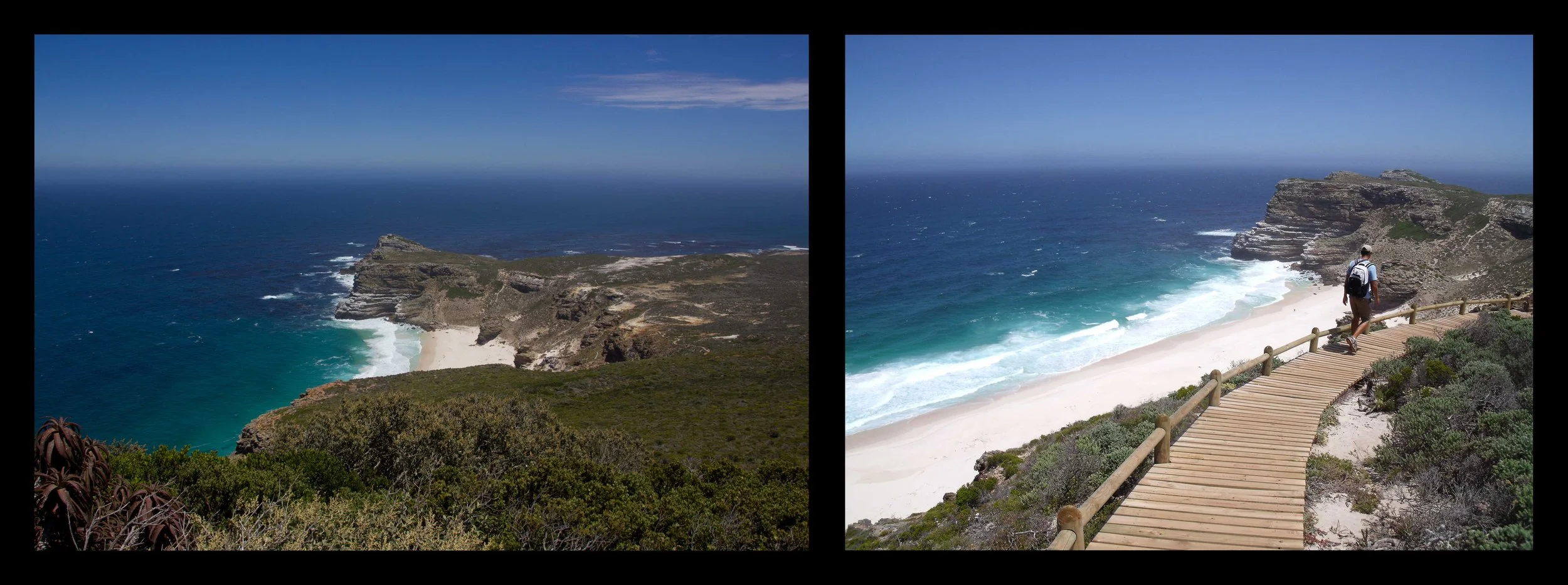 After spending a week in the city, we wanted to explore some of the surrounding area. We rented a car and headed south to spend the day on the Cape Peninsula, the mountainous spine that goes 25 miles south from Cape Town to the Cape of Good Hope and is part of the South African National Park system. The trip took us along Chapman’s Peak Drive. This is a very scenic route where much of the road was cut right into the cliff face at dizzying heights over the Atlantic Ocean. The views over the coastline on this stretch were incredible.