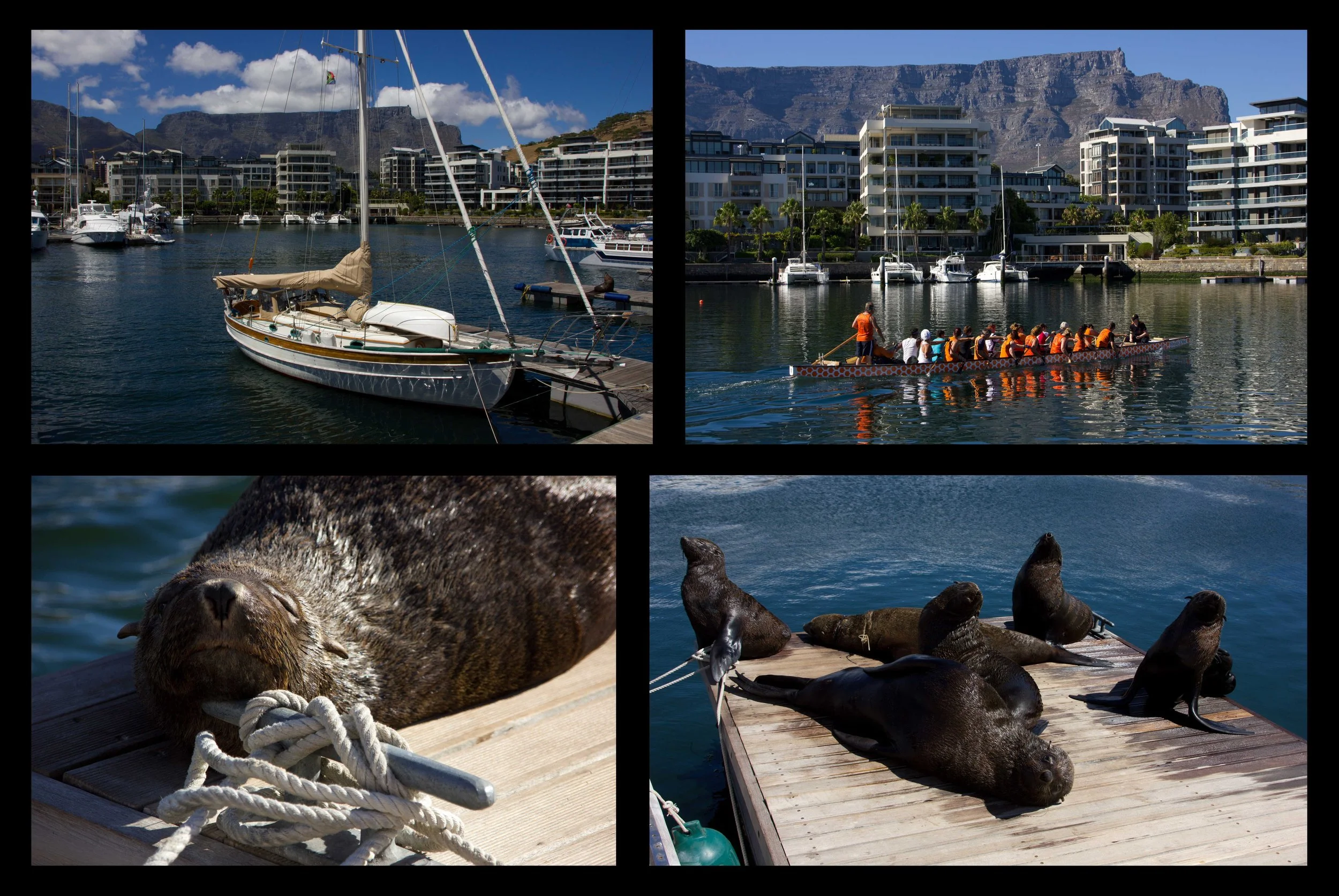 By noon on January 8th, Saviah was moored at the Victoria and Alfred (V & A) Waterfront Marina right in the heart of Cape Town. The marina is part of a big development and is surrounded by high-end condominiums, hotels and restaurants, with Table Mountain looming in the background. We were surprised to find dozens of rambunctious sea lions that also call the marina home. They provide hours of entertainment for tourists but are sometimes a nuisance for boaters. Their barks/growls/hisses can be heard day and night. They like to lounge on the docks, and if they pick one near your boat, unpleasant smells often waft through the cabin.