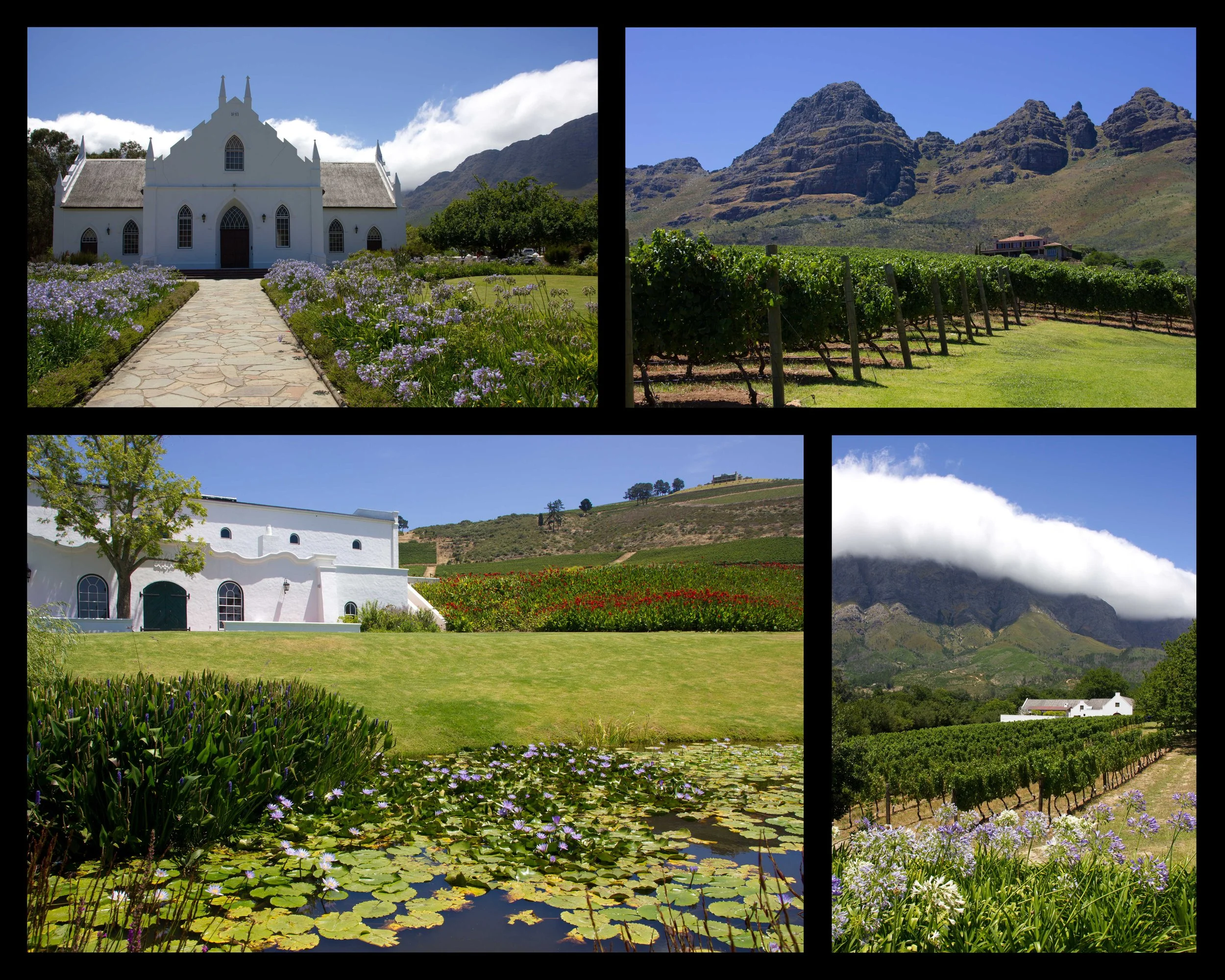 After our tour of the Cape Peninsula, we headed about 30 miles east of Cape Town to spend a couple days in the Stellenbosch area. This town lies at the foot of the Cape Fold mountain range. The well-drained, hilly terrain and the regional climate are ideal for viticulture, and there are hundreds of wineries in the area. With vineyards and orchards dotting the slopes of the mountains and lots of old Cape Dutch manor houses, this was another beautiful spot.