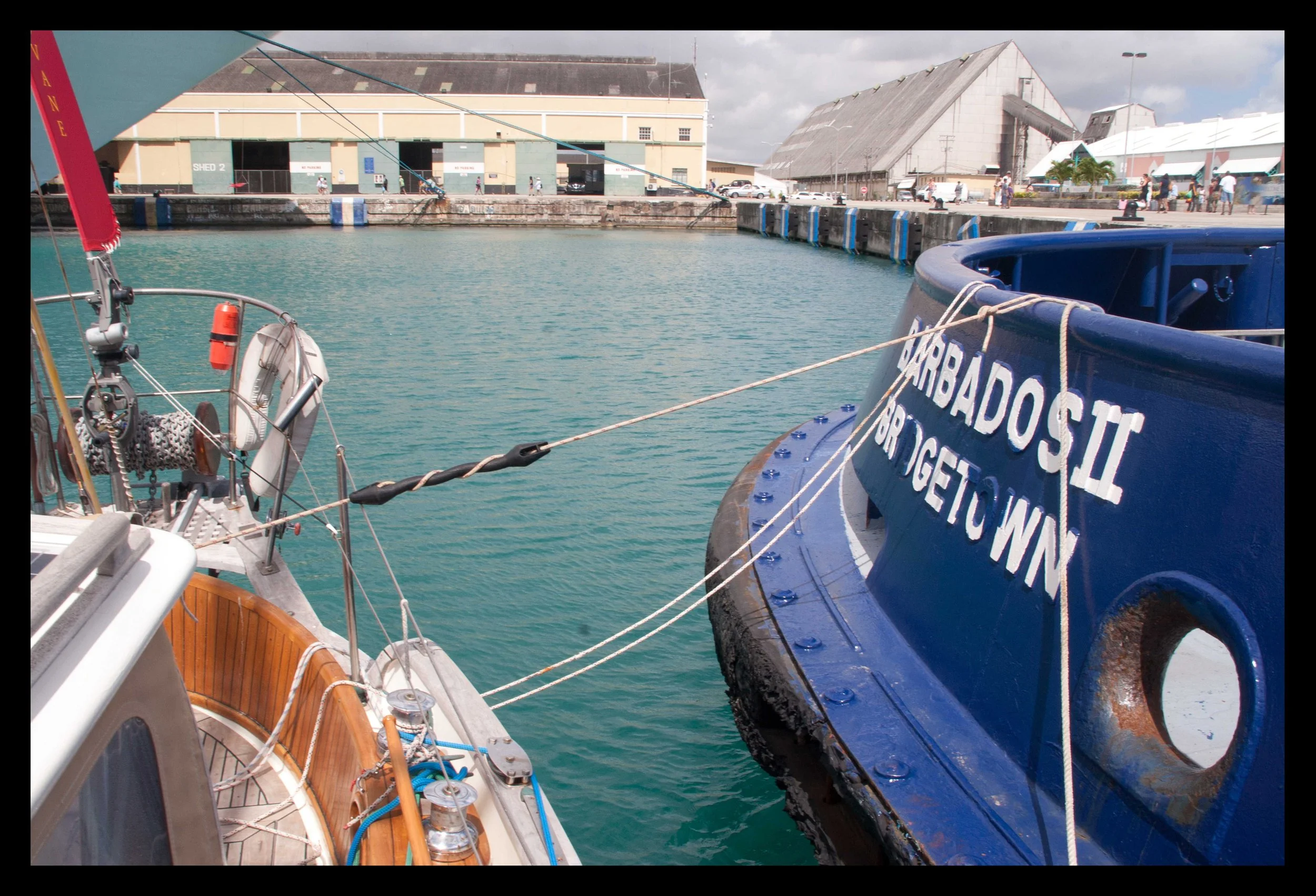 Barbados is the most windward island in the Caribbean and is very popular for cruise ships. Unfortunately, the port, customs and immigration offices were all located around the deep water basin that was built with these large vessels in mind. The tall concrete walls used by these huge ships are not so good for a little sailboat, but the port requires all visiting yachts to come alongside to complete clearance.