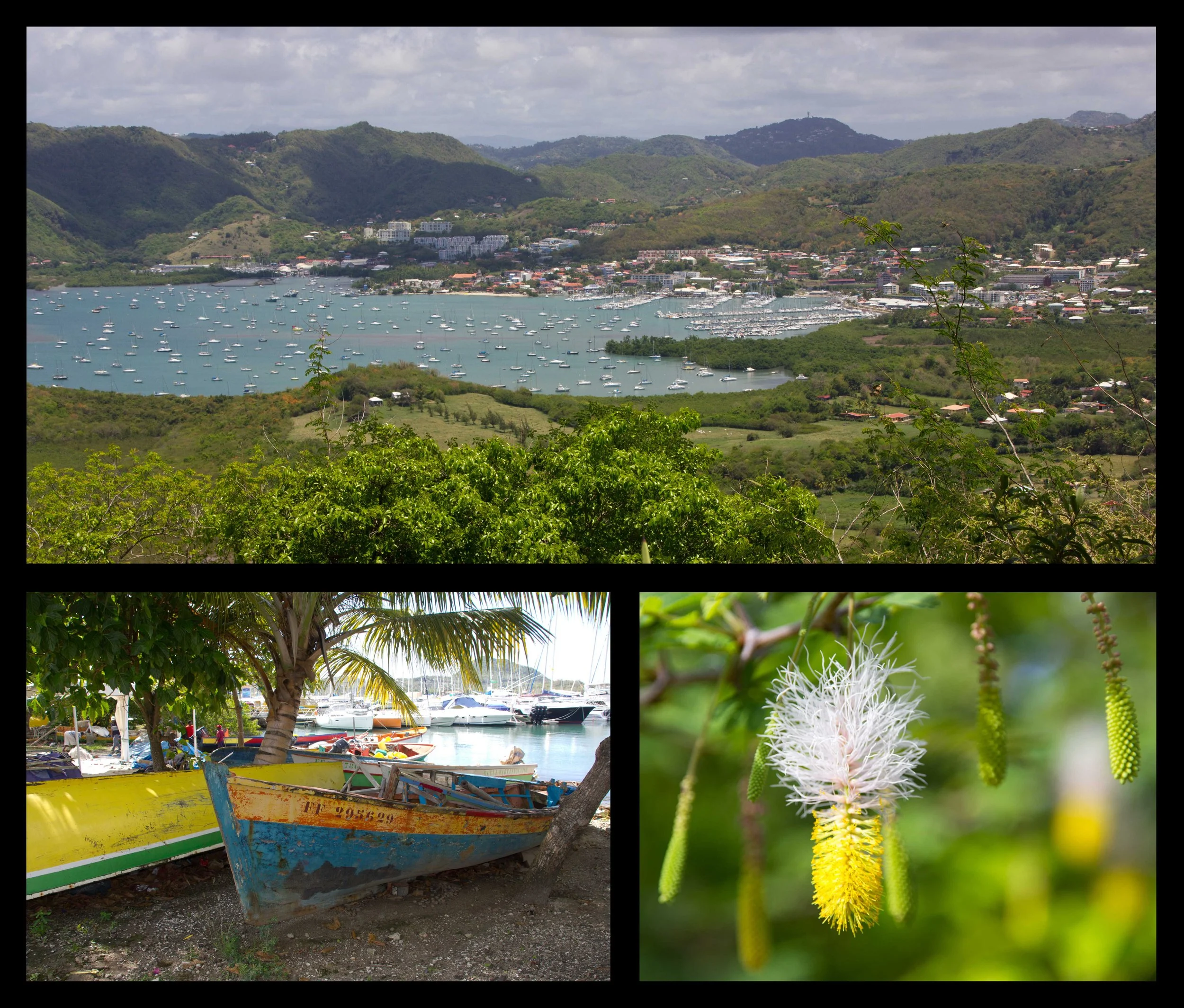 There is a hiking trail that leads from Ste. Anne along the coast to Les Salines, one of the best beaches on the island. The trail alternates between wooded coastal pathways and walks along the beach. The pathways were very muddy due to all the recent rain, but it was easy to wash off with a swim in the sea. We had a leisurely lunch on the beach at Les Salines followed by another swim before the two hour hike back to Ste. Anne. On another trip we took the bus over to the base of Piton Creve-Coeur and did the short hike to the summit, which had some great views of the bay and beyond.