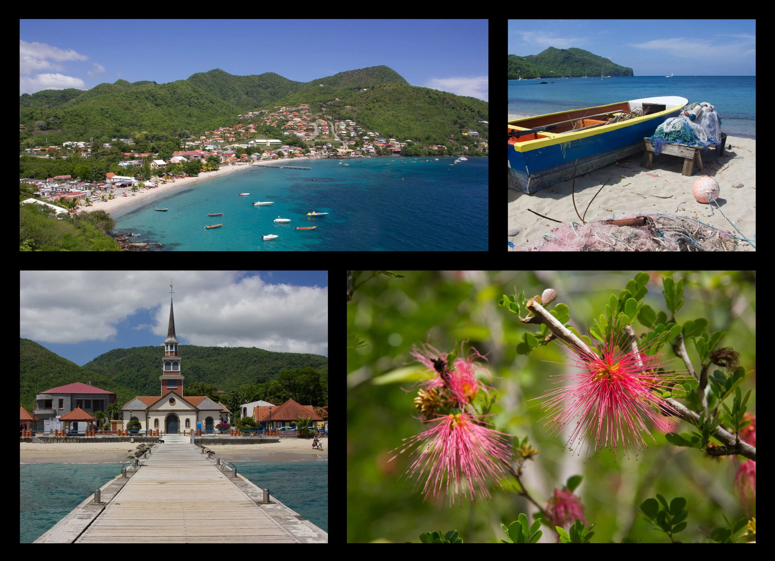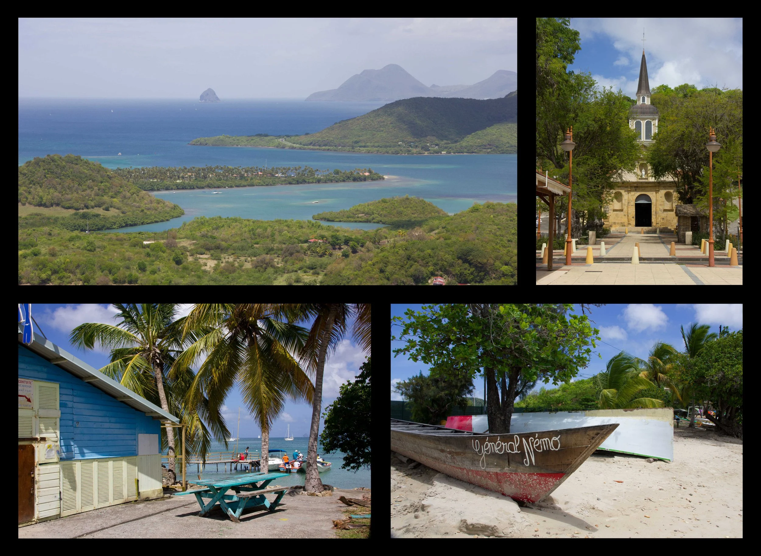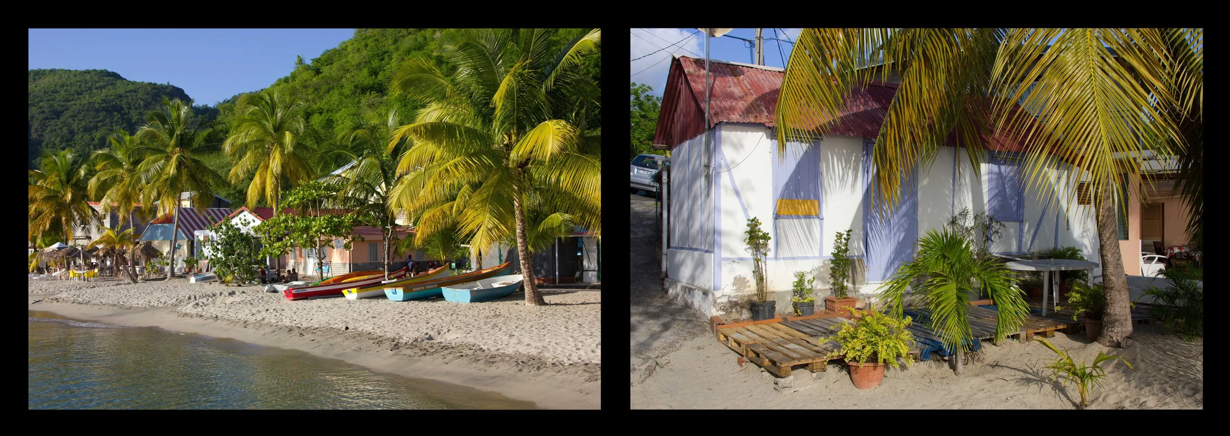 The following day, we set off on the trail over and around the headland to the neighboring bay, Anse D’Arlet (also called Petit Anse D’Arlet). This is a picturesque little fishing village with a gorgeous beachfront. The town itself was full of colorful buildings, and a photogenic 18th-century Roman Catholic church sits at the head of the town pier. The town reminded us of the villages in French Polynesia where the locals were out sweeping the streets in front of their homes, and the whole place seemed impeccably clean. We spent the morning walking around and swimming in the bay before enjoying a creole lunch at one of the beach huts.