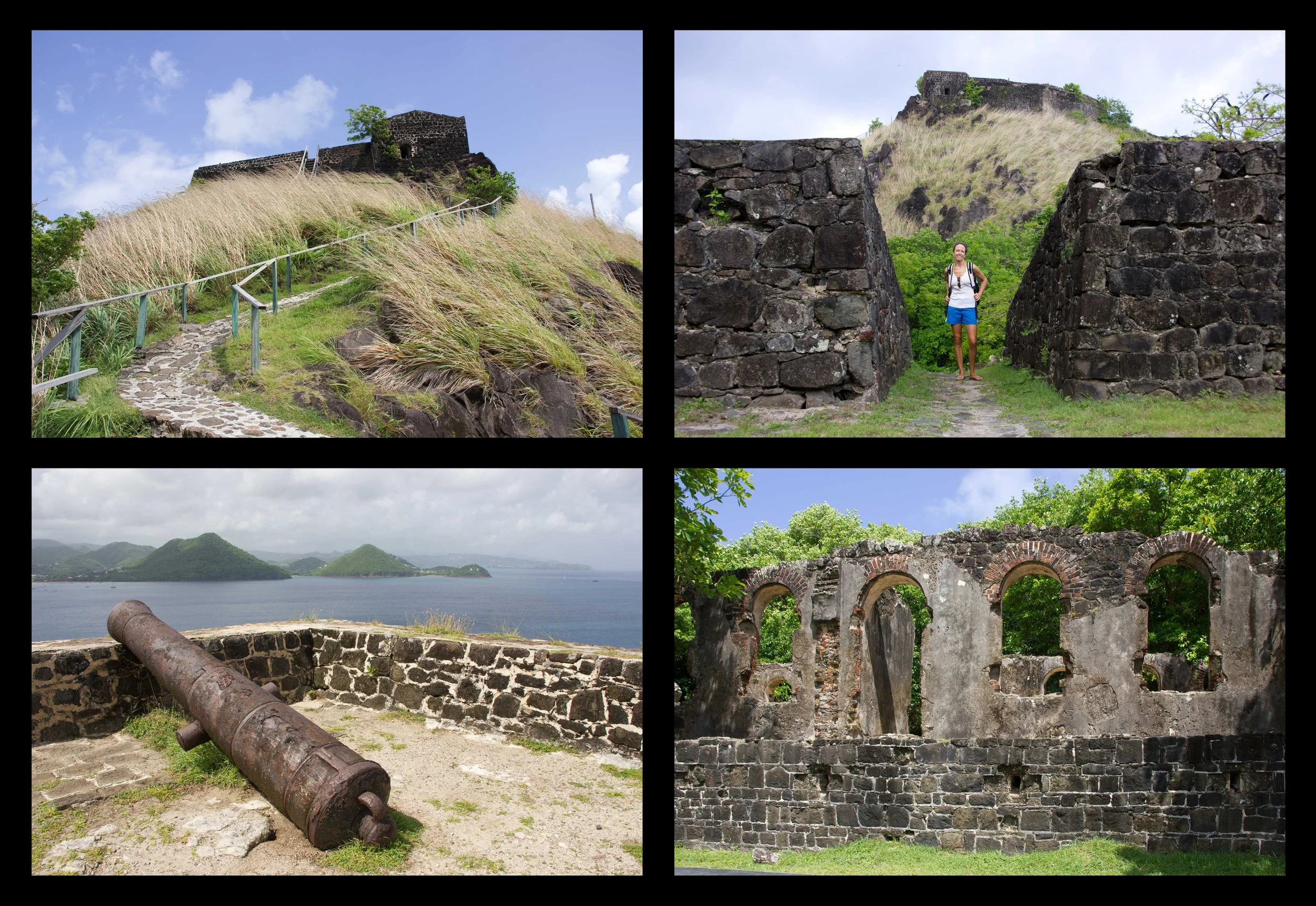 Years ago, the British built Fort Rodney on the island, as it was a good location for defending against the French fleet on nearby Martinique. With the end of hostilities between the two countries, the fort was basically abandoned in the 19th century. Trails lead all over Pigeon Island, passing by the remnants of the old stone buildings. At the top of Fort Rodney Hill is a small fortress with a few rusting cannons, and another trail leads up to the top of Signal Hill, the highest point at 359 ft. This point afforded great views of St. Lucia, Rodney Bay and even Martinique to the north.