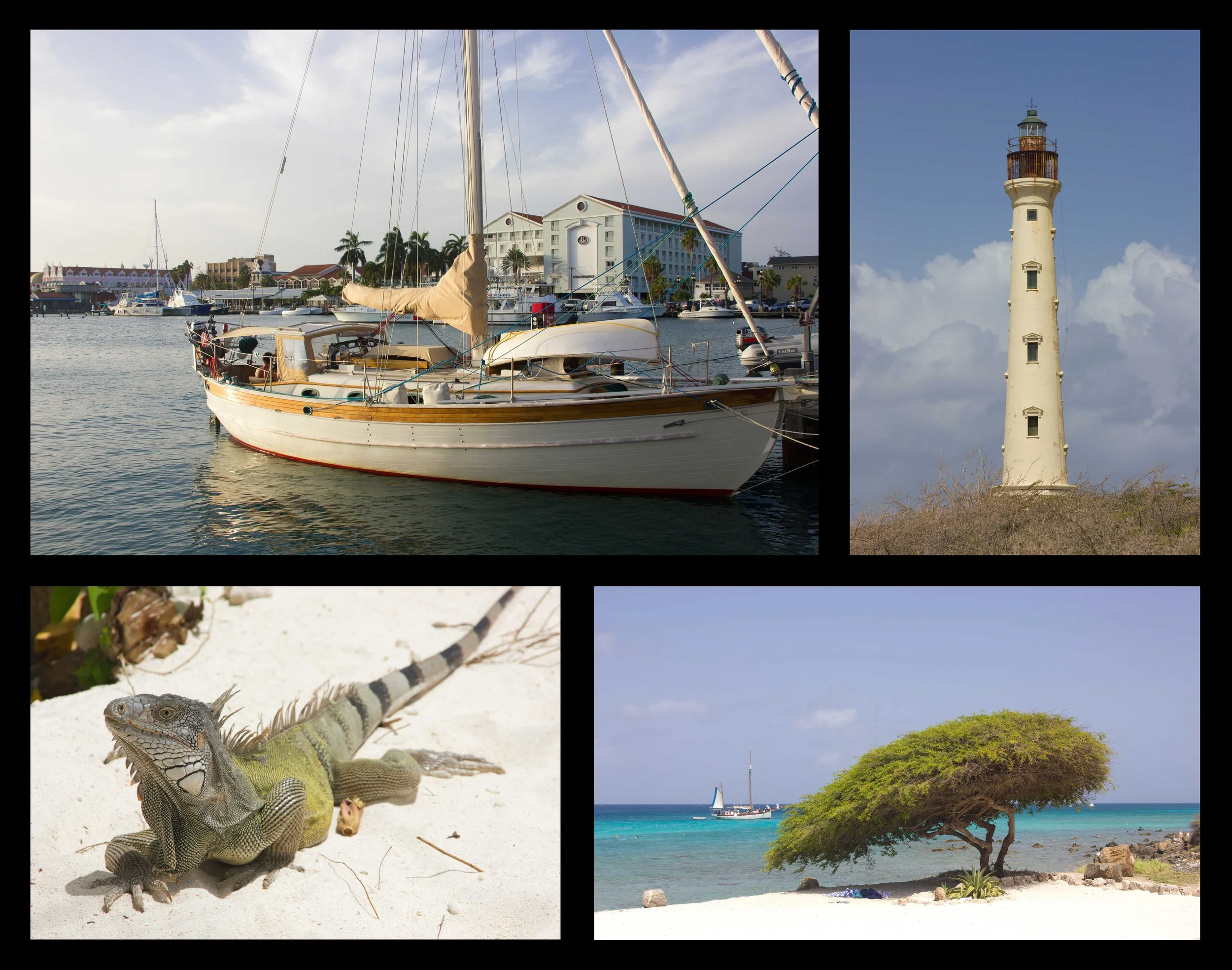 The next morning we set sail from Santa Cruz at 4:45 am and had E winds at 15-18 knots. It was a fairly pleasant sail, doing wing-on-wing with our little jib and a single reef in the main. Saviah averaged six knots, and we made the sail in just under nine hours. The course took us around the south side of Aruba, a long narrow island about 20 miles long and six miles wide. Given the strict clearance requirements in Aruba, we needed to arrive during business hours to avoid overtime charges. We made our way halfway up the west coast to Barcadera Harbor, an unpleasant commercial harbor but the only port of clearance for visiting yachts.