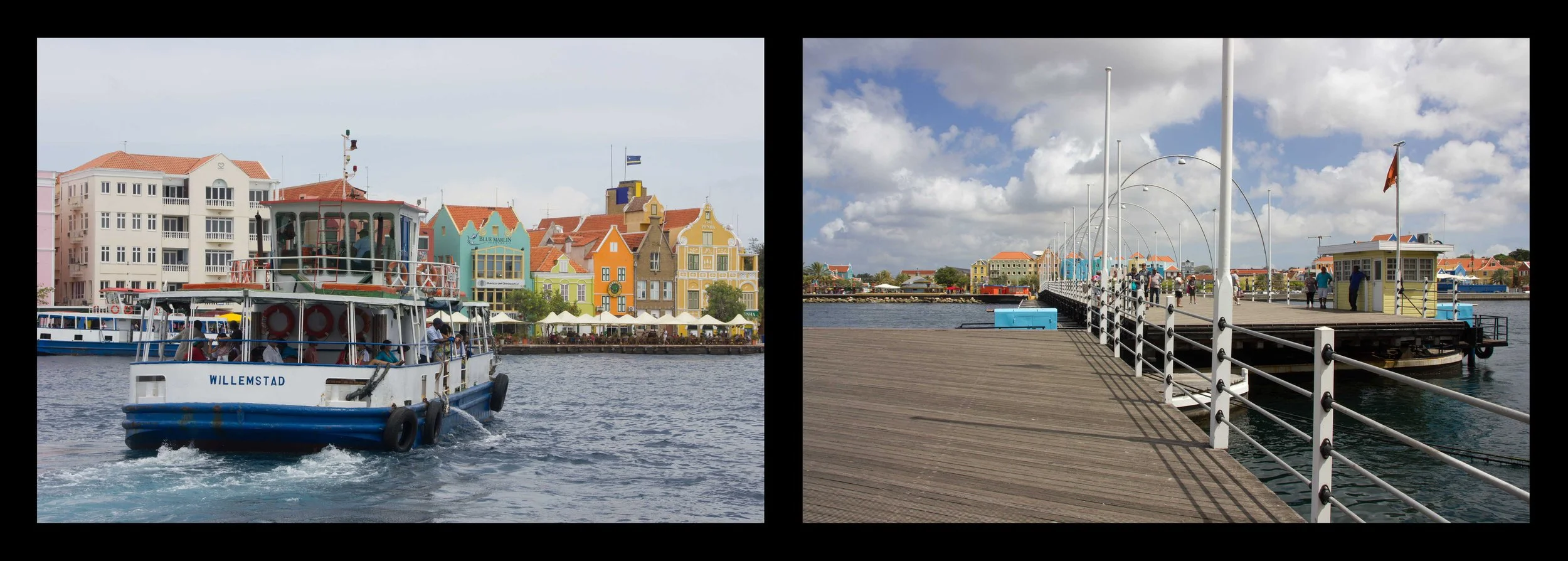 The customs office on the waterfront was our first stop for paperwork before heading over to immigration. The immigration office is on the other side of the Santa Anna Baai, which is a wide channel running through the city, where the freighters come in and enter the main commercial harbor to the north. To get to the other side, you walk across the 220 feet long Queen Emma Bridge, which is a floating pontoon built in 1888. This bridge swings open to allow ships to enter or exit the harbor, so it is occasionally closed to foot traffic for short periods of time. When it is unavailable for longer periods of time, they have a free water taxi that shuttles people back and forth.