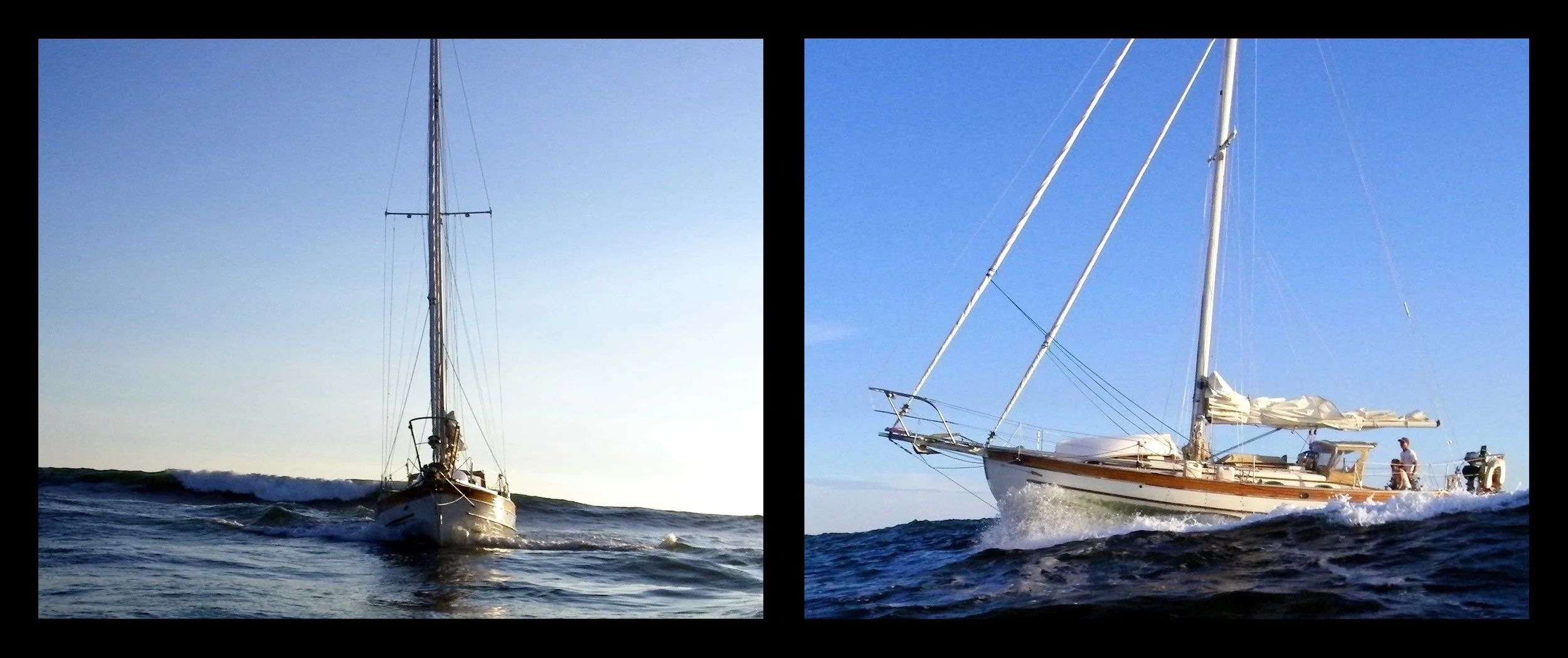 A few hours later, we found ourselves in the middle of a squall with 30 knots of SE wind, lightning, and choppy seas. It only lasted two hours, but the choppy seas stayed with us for several hours, causing us to roll heavily with no wind to keep our sails full. After that, it was an uneventful trip, and we made it to the harbor entrance at 3 pm, an hour before high tide.