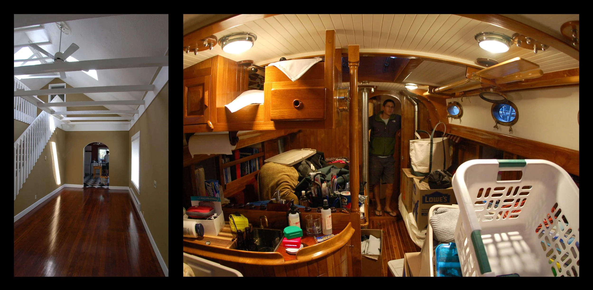 We just barely met our goal and had everything out of the house by July 31st. It would be several more days before we were able to find a place for all of our stuff aboard Saviah. Adam was stuck sleeping on a berth that was a few inches too short and narrow and surrounded by stacks of boxes during his last night.