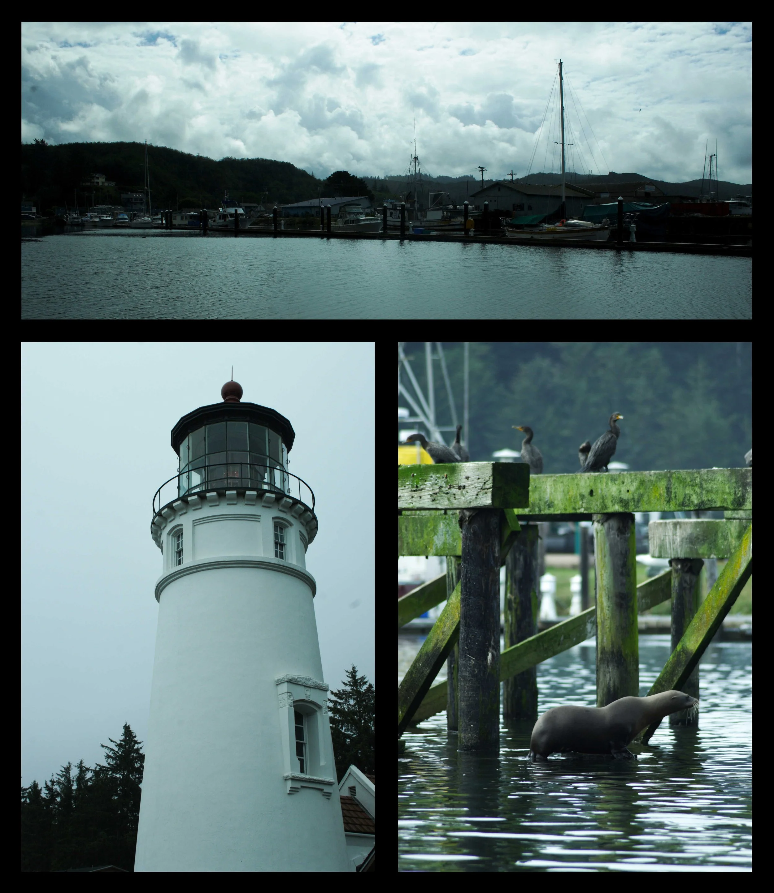 We had limited navigational information for the Umpqua River, but we knew there would be a place to moor about eight miles up the River. We were pleasantly surprised to find Winchester Bay, just inside the mouth of the river, which had plenty of moorage and all kinds of services for a fraction of the price we were used to paying for in Puget Sound. We stayed there for four days and got the diesel heater going so we could dry out the boat and warm up. It rained every day, so we spent most of the time inside reading.