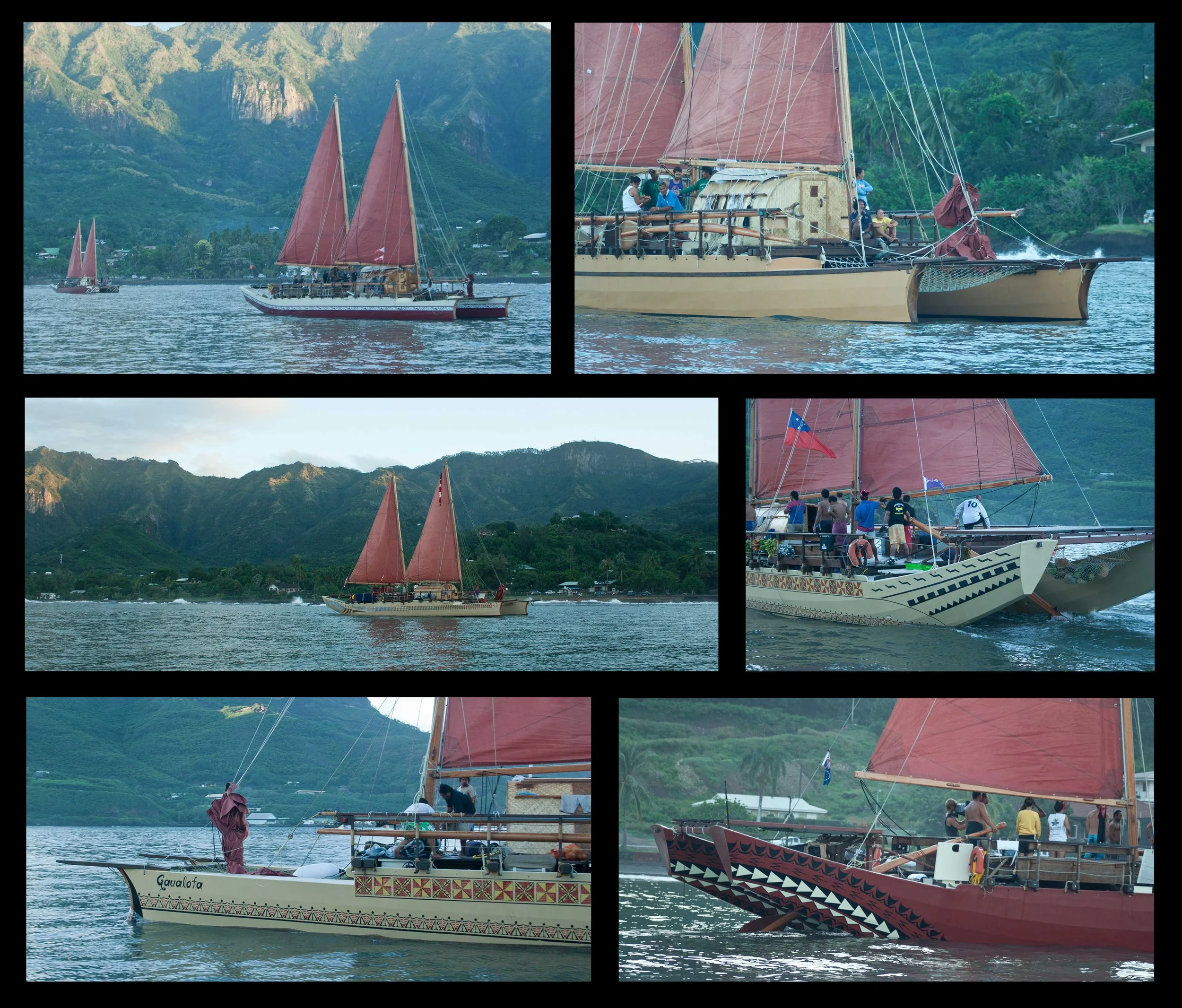 At 6 am the following morning, we awoke to the sound of drumming and chanting, which sounded like it was coming from the cockpit. We hurried outside and saw a large double hulled sailing vessel. It seemed to be around 50 ft long and sailed past Saviah, within about 20 feet of our stern. Once they neared the quay, they did a quick dance and chant for the crowd of Marquesan people, who were gathered to cheer them on. Six more boats followed, all the traditional Polynesian sailing canoes, but all flying different flags. We later learned that they were replicas of the old Polynesian sailing canoes. They were each built on different South Pacific islands including New Zealand, the Cook Islands, Tonga and the Marquesas (not sure about the other three). They were sailing through Polynesia, starting in New Zealand, and they were leaving that morning for Hawaii.
