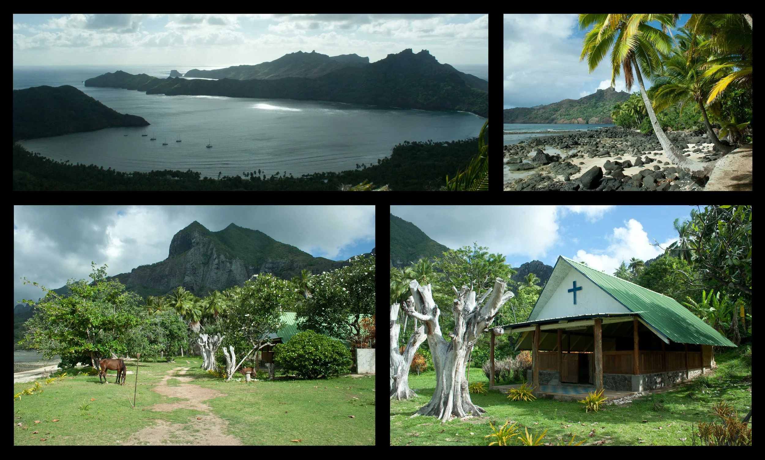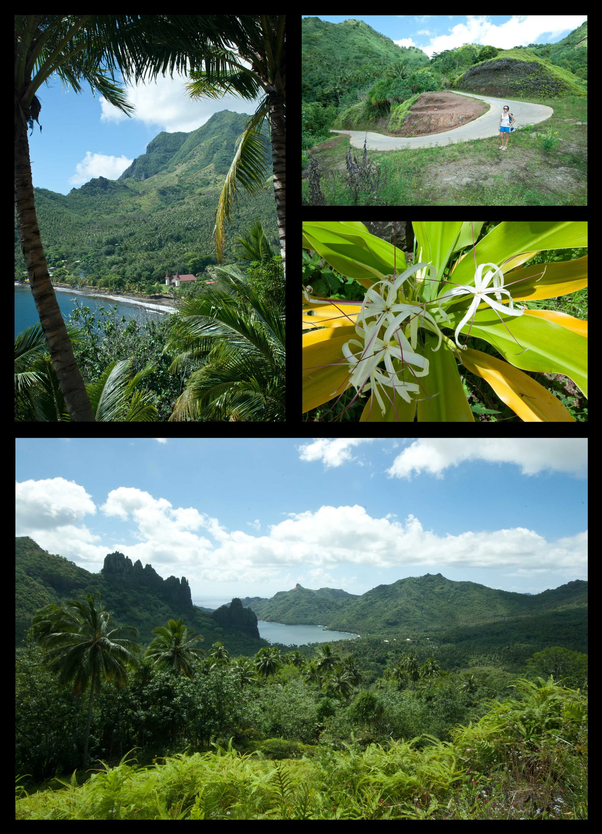 The next morning we were up early and hiked an hour over the pass to the next village, Hatiheu. This was an absolutely picturesque little village with amazing scenery at every turn. There were probably a few hundred residents here, and many of them were out tidying the place up. They were raking up palm branches from the dirt roads and tending to community gardens along the waterfront. There was also a small store, post office and a school.