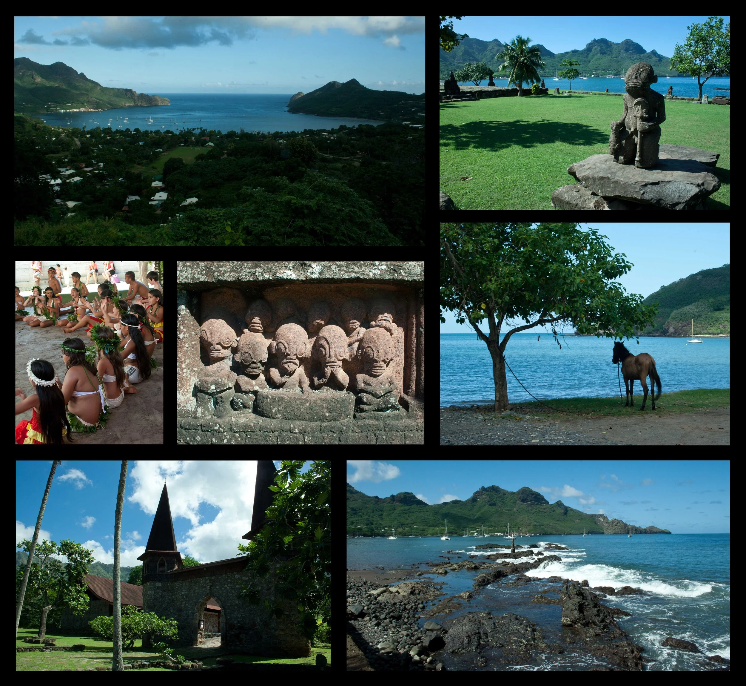 The next morning (Saturday) is when the weekly market takes place, starting at 4 am and ending around 8 am. We managed to make it to shore by 5:15 am. There were local fisherman along the wharf, cleaning and selling freshly caught fish from the night before. We found our first veggie market, and bought some potatoes and cucumbers. Fresh baked goods were everywhere and at good prices, so we treated ourselves to chocolate croissants and quiche for breakfast. Later that morning we watched the finish of the outrigger canoe races. These guys paddled from the neighboring bay, out into the ocean and into Baie Taiohae. That was quite a distance and only the day before we were out in this same area in 15 to 20 foot waves. It is hard to imagine being out there in a racing canoe, but we were told they like the larger waves because they can surf down them.